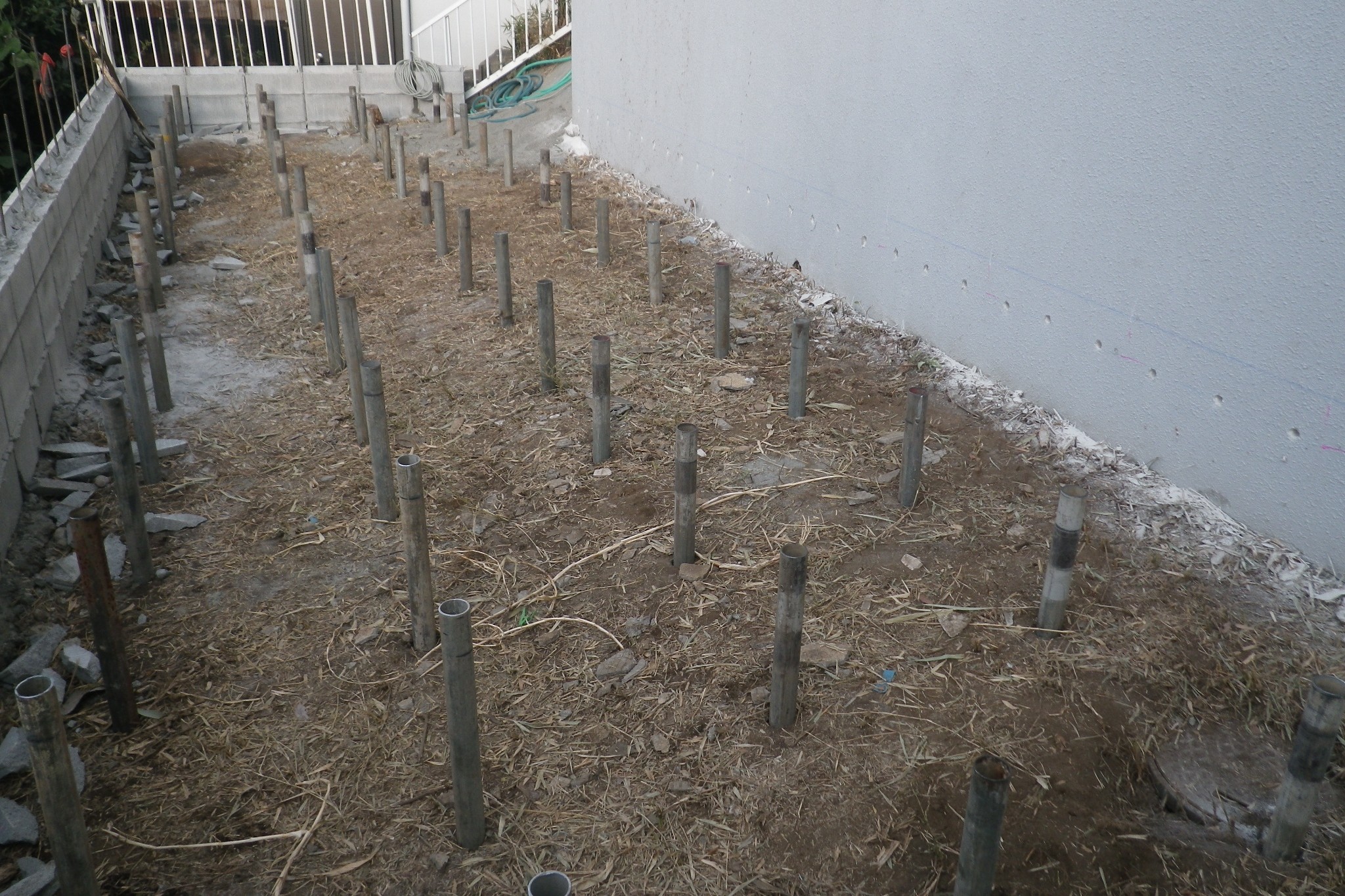 単管打ち込み・差し筋なども行い、強度の高い土台を作成しました。