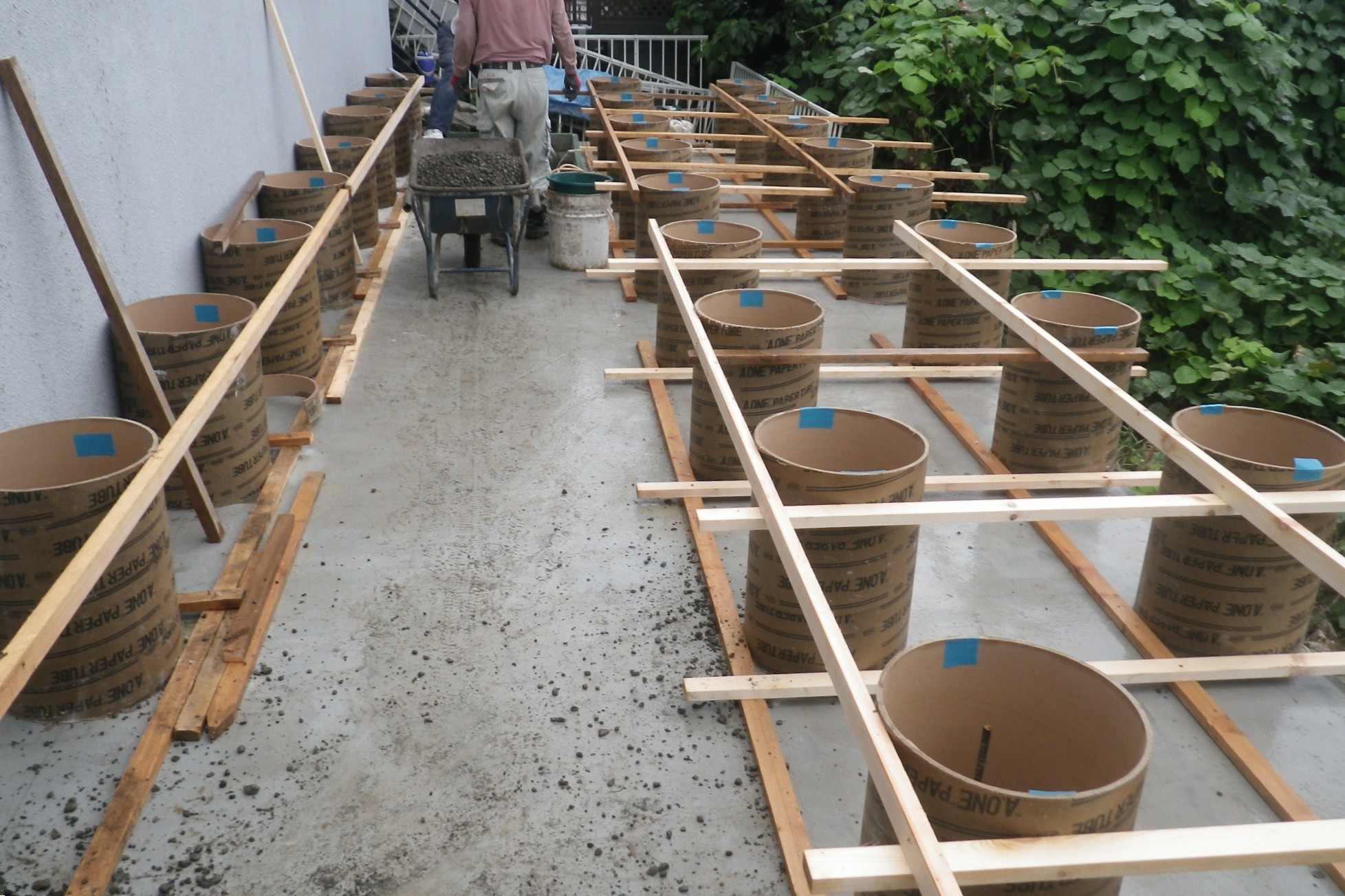 傾斜角度、土の硬さなどを考慮し、柱を設置する床面は土間コンクリートで作成。