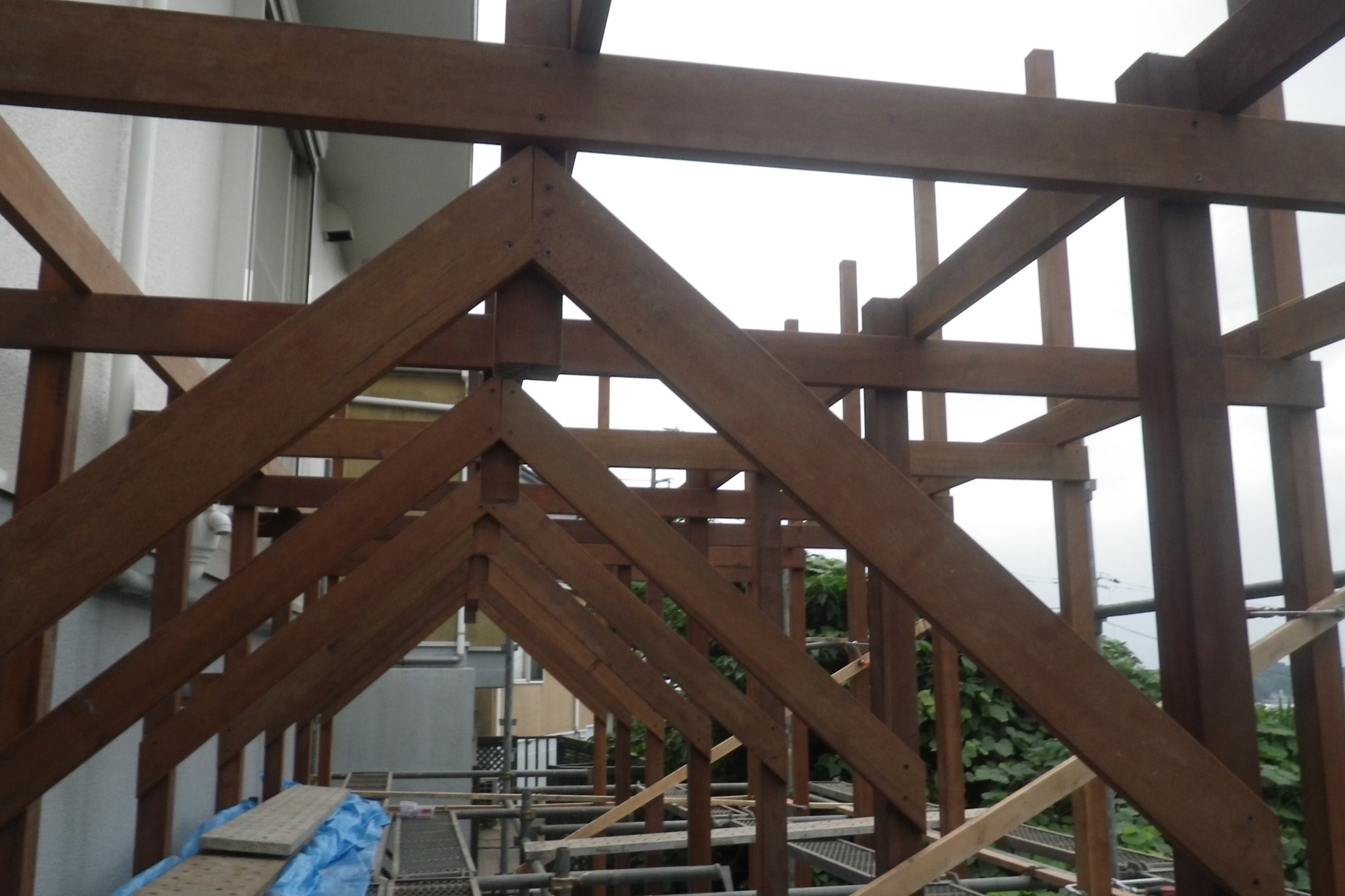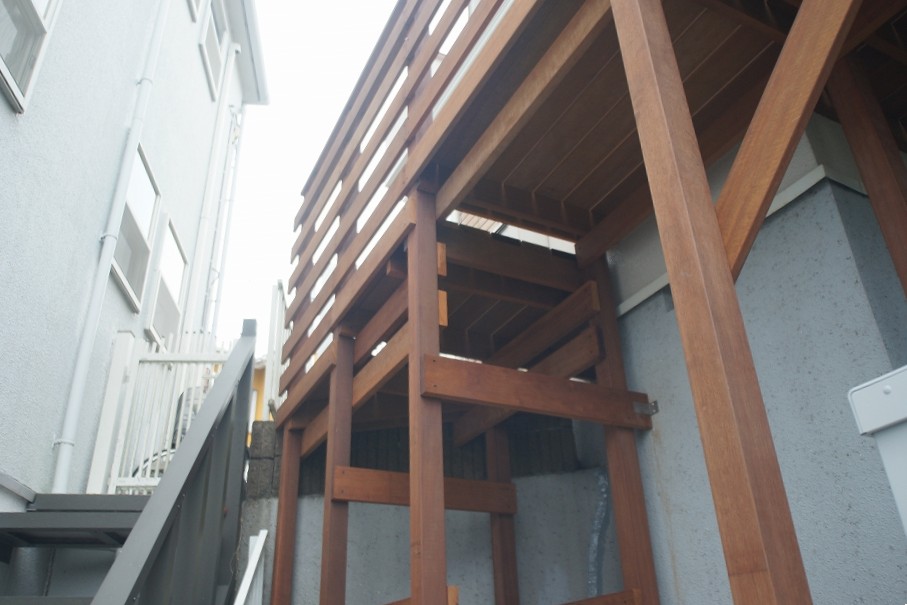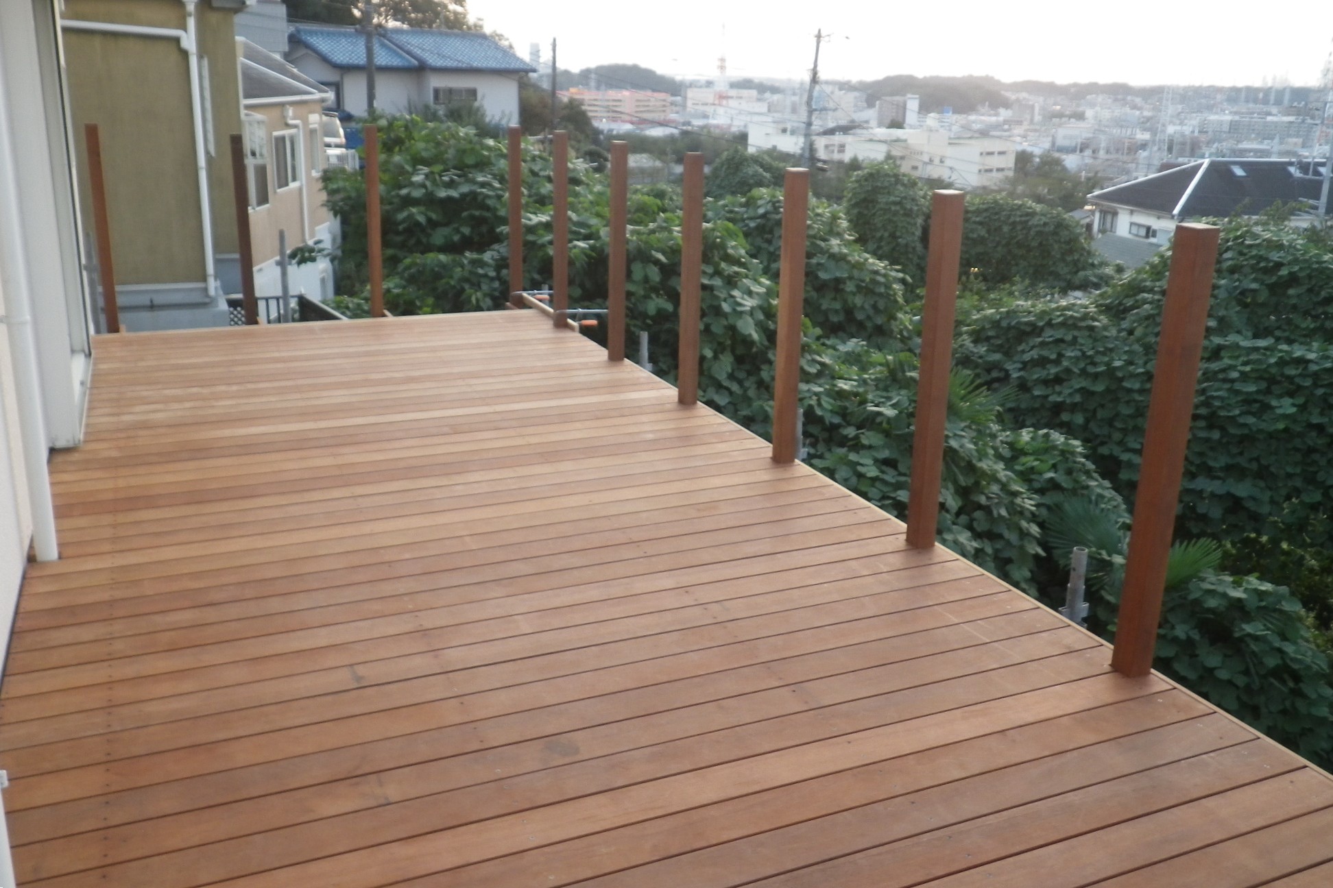 建物裏の崖地に高床式天然木デッキ<横浜市I様邸>