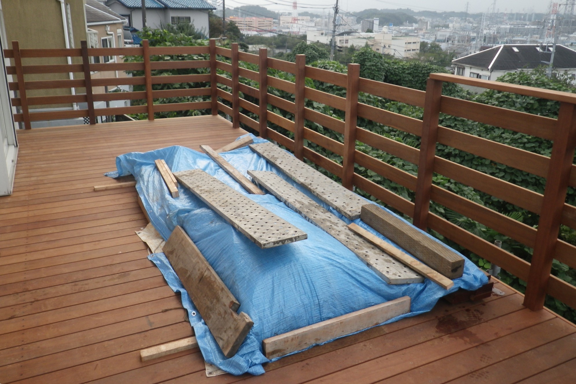 • 【工事完了】使えていなかった崖地に、デッキが設置できました。