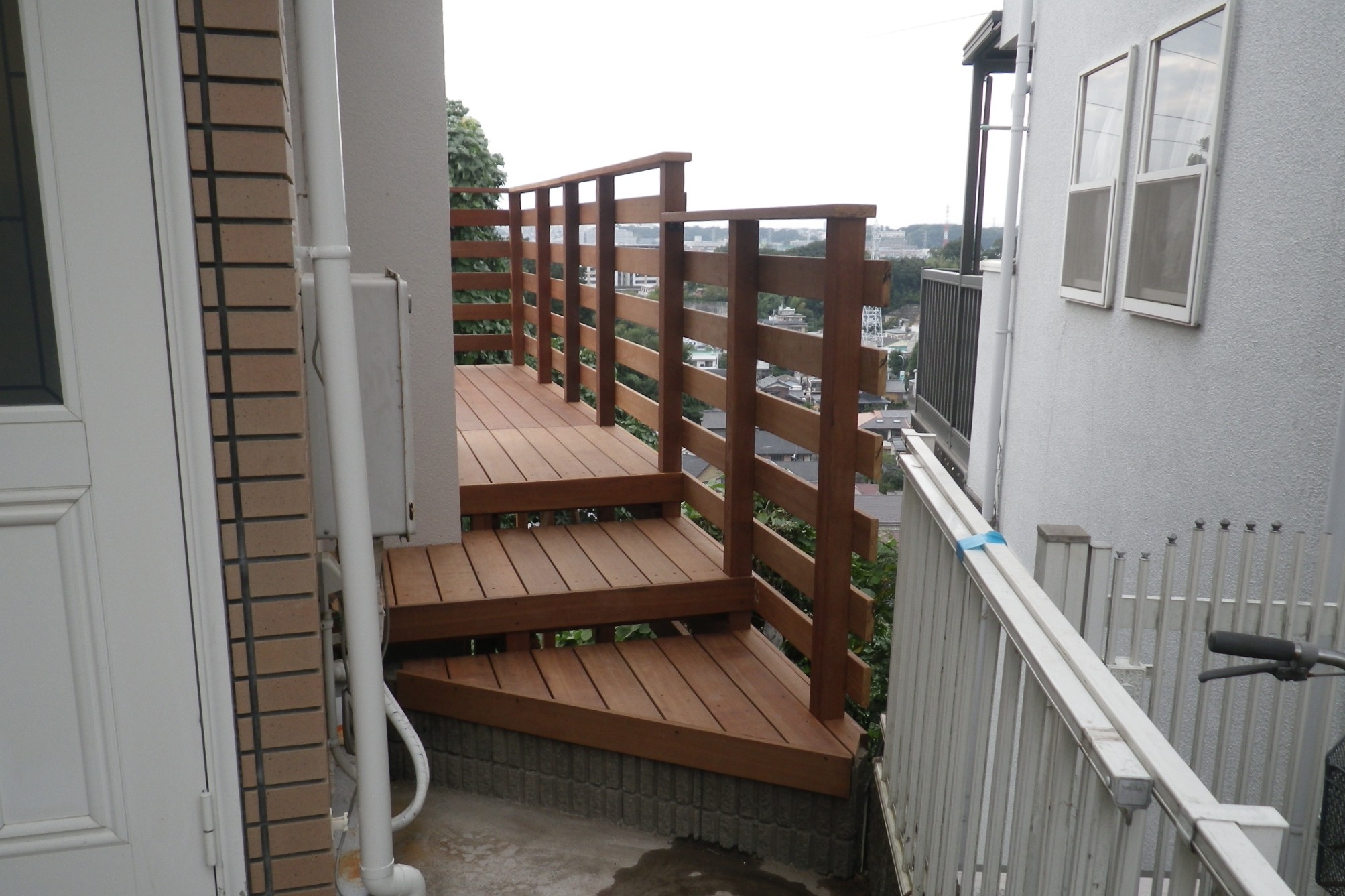 使えていなかった建物裏の雑草だらけの崖地に、デッキが欲しいというご要望で工事させておただきました。