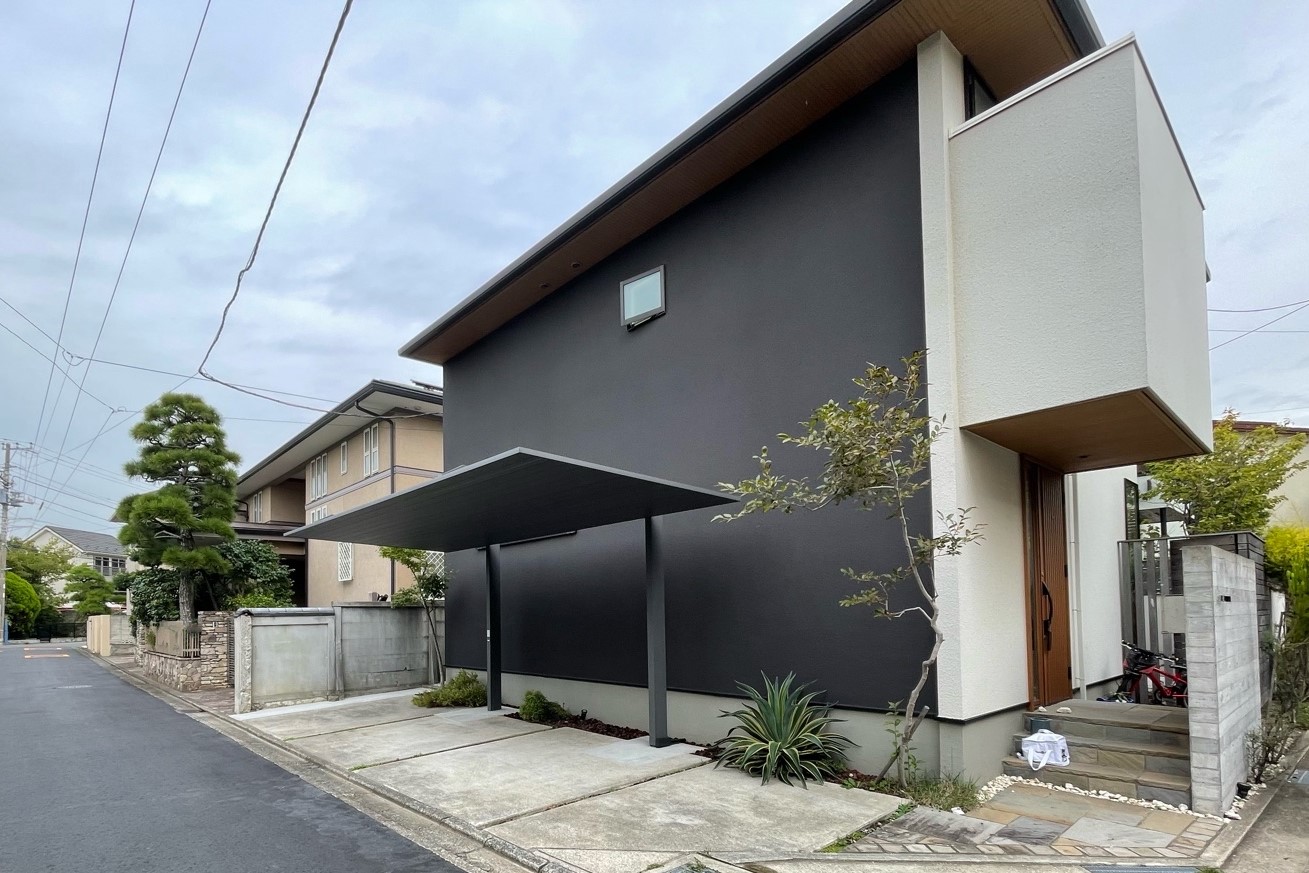 【工事完了】期間限定カラーのテクスチャードダークグレーが、外壁のカラーと調和して統一感のある仕上がり。